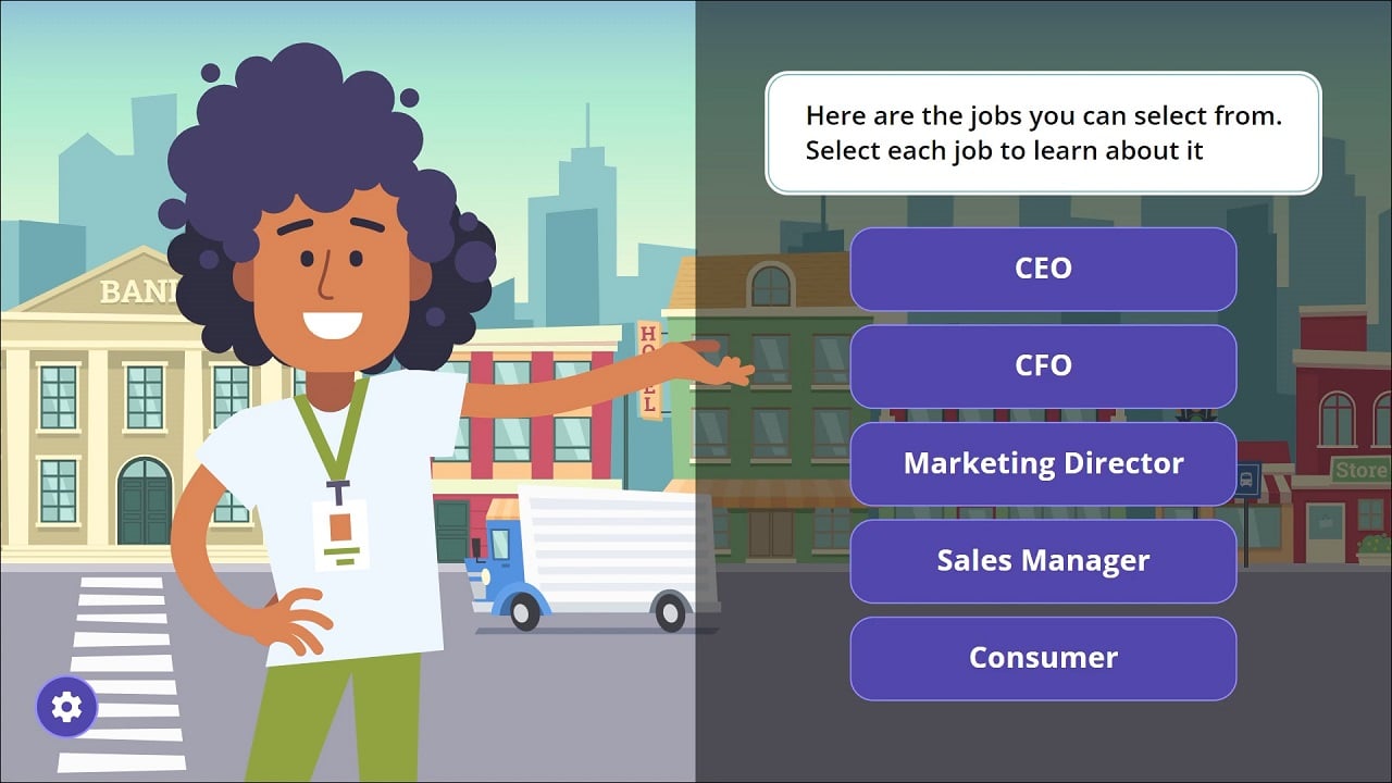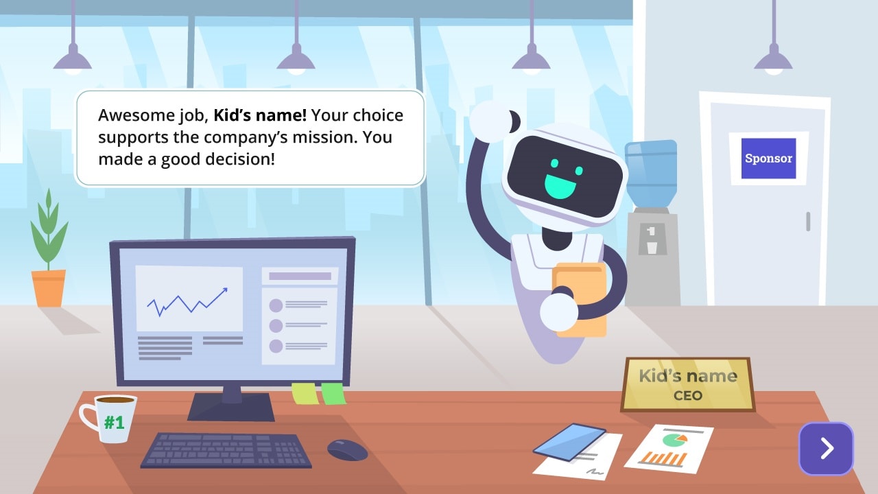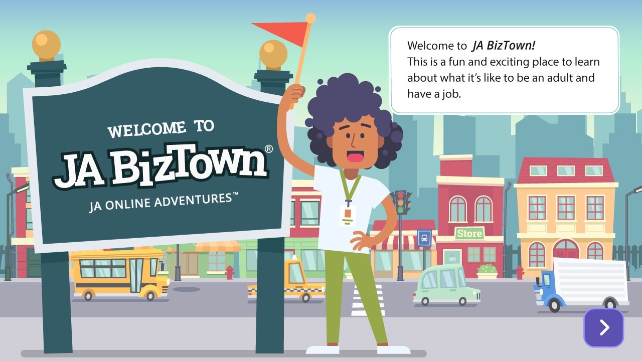 With Junior Achievement and their amazing team we developed this unique simulation. Students learn to run a business and lead. Problem-solving, decision-making, and analytical thinking presented via a story adventure incorporating branching techniques providing numerous alternative outcomes. Elementary through Middle School.